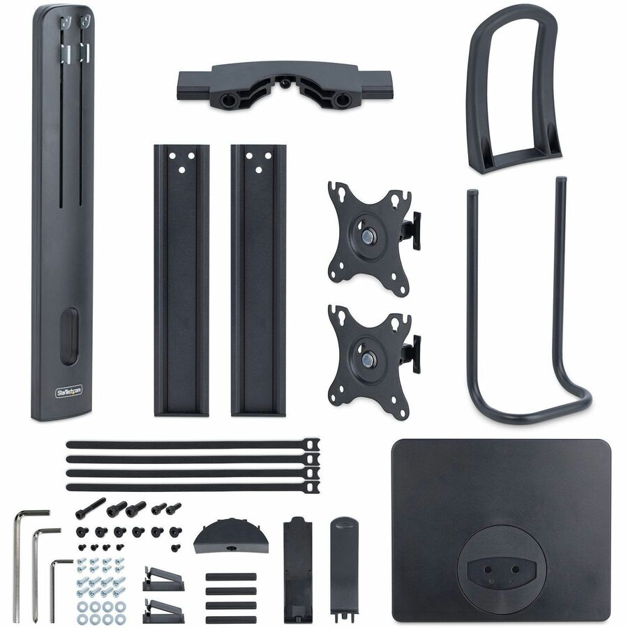 StarTech.com Crossbar Dual Monitor Desk Stand For 27inch Screens, Max Cap 26.4lb, VESA Mount 75x75/100x100, Toolless Height Adjustment - 2MC1S-MONITOR-STAND