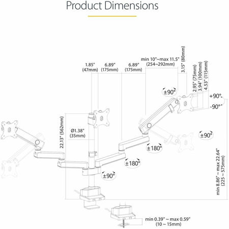 StarTech.com Triple Monitor Desk Mount For Up To Three 27in Screens, VESA 75x75/100x100, Tool-Less Arm Adjustments, C-Clamp/Grommet