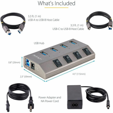 StarTech.com 4-Port Self-Powered USB-C Hub with Individual On/Off Switch, Desktop/Laptop USB-C to USB-A Hub, USB Type C Hub w/Power Supply - 5G4AIBS-USB-HUB-NA