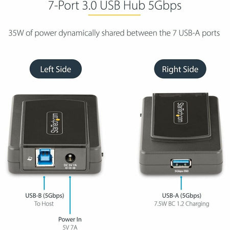 StarTech.com 7-Port USB Hub, USB 3.0 5Gbps, USB-A to 7x USB-A, Self Powered USB-A Expansion Hub w/ 35W Power Supply - 5G7AS-USB-A-HUB