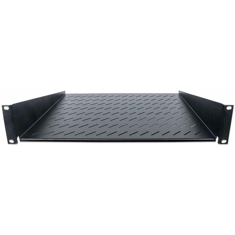 19" Cantilever Shelf, 2U, 2-Point Front Mount, 400mm Depth, Vented, Max 25kg, Black, Three Year Warranty