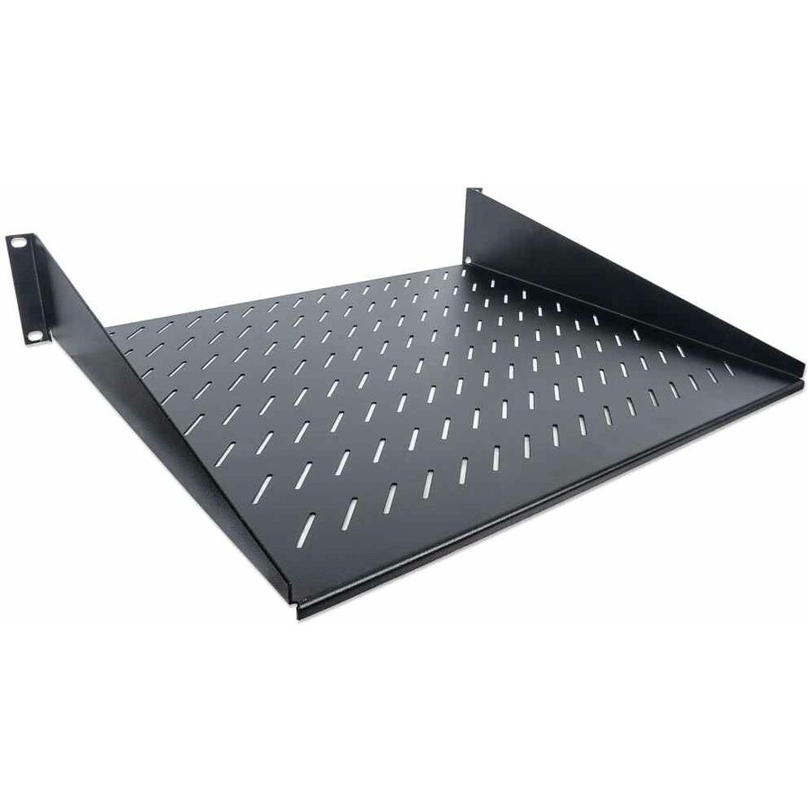 19" Cantilever Shelf, 2U, 2-Point Front Mount, 400mm Depth, Vented, Max 25kg, Black, Three Year Warranty - 712514
