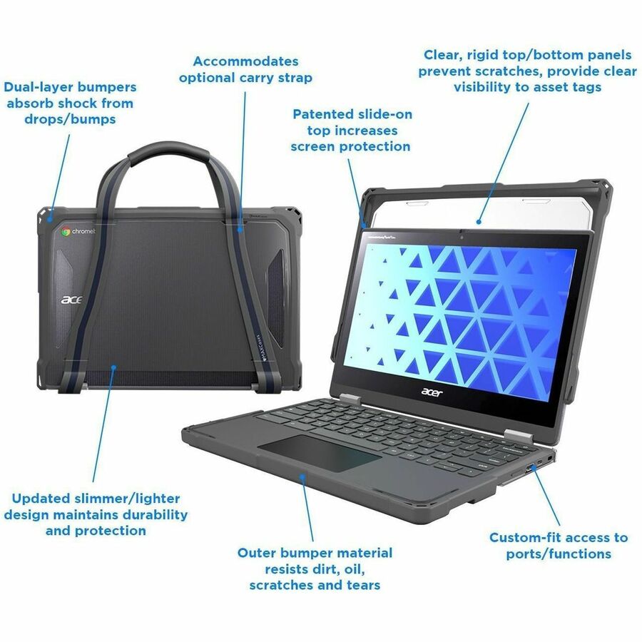 MAXCases Extreme Shell-F for Acer R756TN (Spin 511) & R753T/R753TN & R722T (Spin 311) Chromebook 11.6" (Gray/Clear) - ACESF3R756GRY