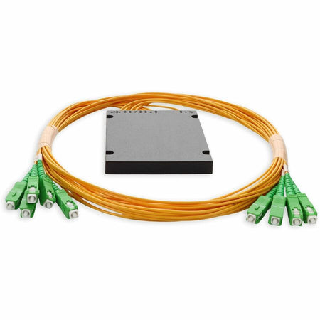 AddOn Single 1xASC 1x (Male) to 8xASC (Male) Yellow OS2 Simplex Fiber Splitter Box with 1.5m pigtails