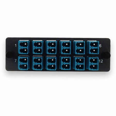 - Product Name: 4-Bay Panel Plate with 24-fiber 12x LC Duplex OS2 Fiber Adapter Panel