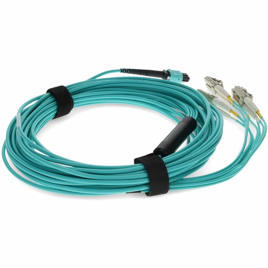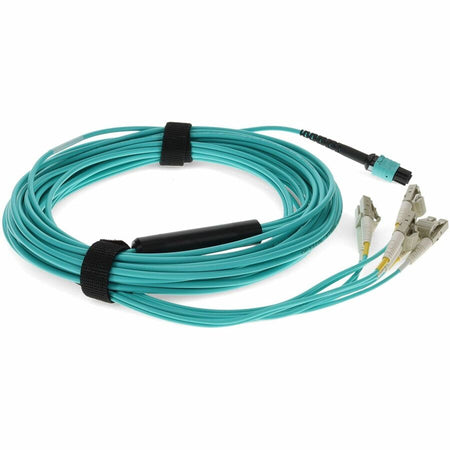 AddOn 10m MPO/UPC to 4xLC/UPC Duplex Aqua OM4 OFNP (Plenum-Rated) 8-Strand Fiber Fanout Cable - ADD-MPO-4LC10M5OM4P