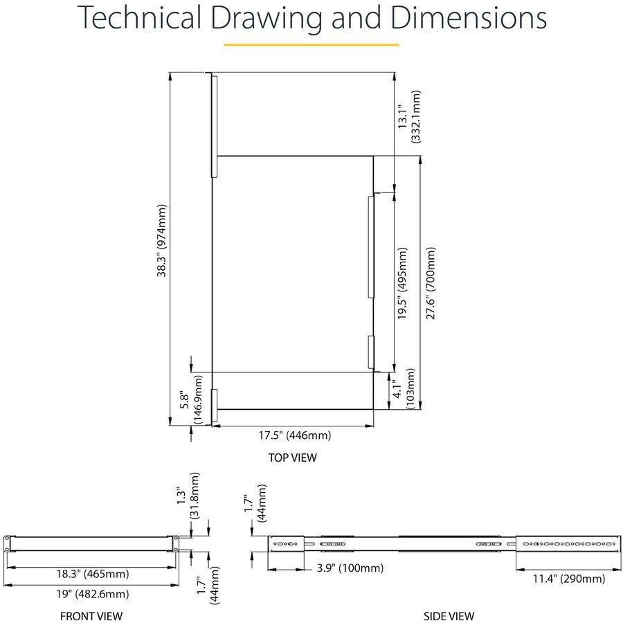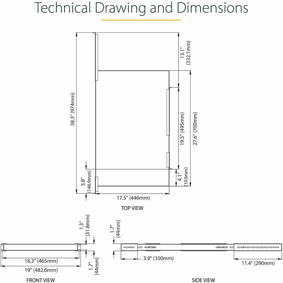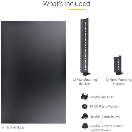StarTech.com 1U 4-Post 19.5 to 38in Adjustable Mounting Depth Rack Mount Shelf - Heavy Duty Fixed Rack Shelf - 330 lb / 150kg - 27.5in Deep