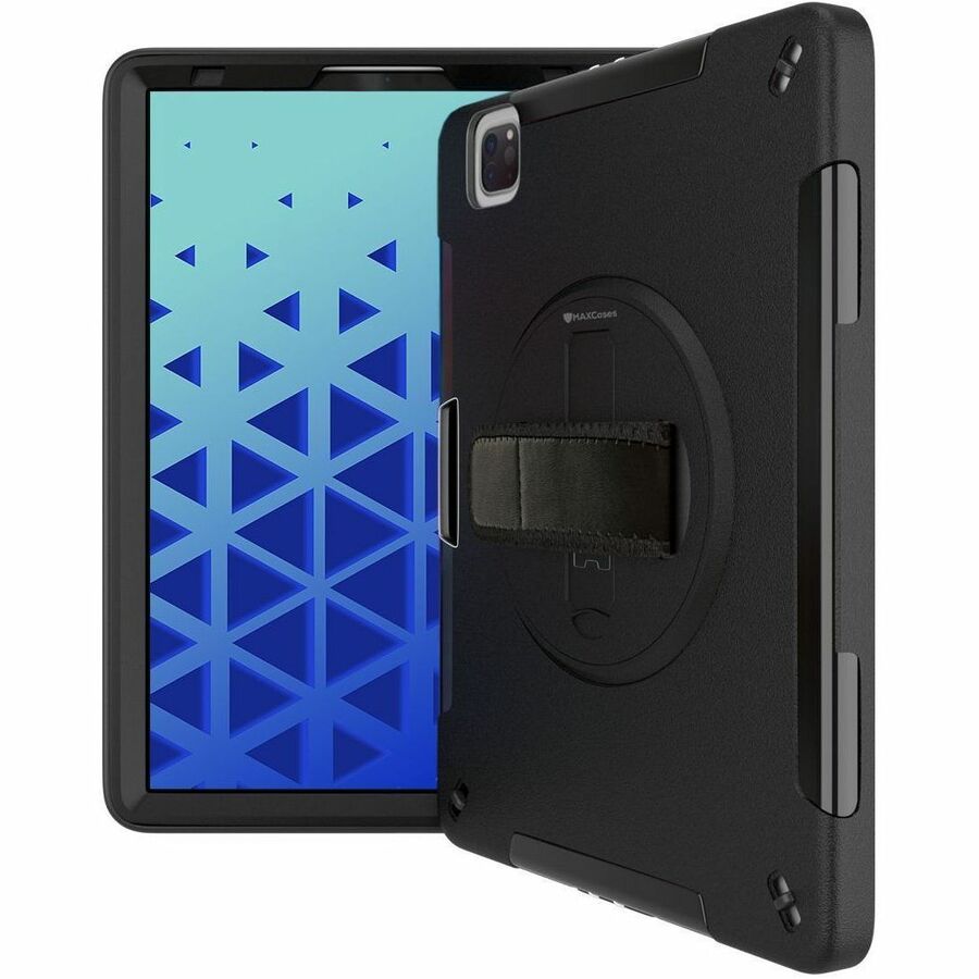 MAXCases Extreme Shield for iPad Pro 12" (2020/2021) w/ Handstrap, Shoulder Strap, Pencil Garage (Black) - AP-ES-IPP-1220-BLK