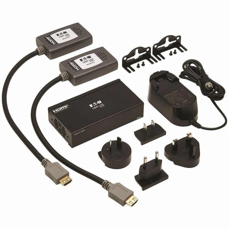 Eaton Tripp Lite Series 2-Port HDMI over Cat6 Extender Kit, Splitter/2x Pigtail Receivers - 4K 60 Hz, HDR, 4:4:4, PoC, 230 ft. (70.1 m), TAA