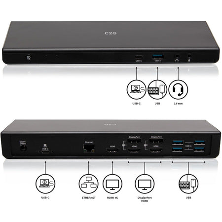 C2G USB C Triple Monitor Docking Station, HDMI, DisplayPort, Ethernet, USB - 85W Power Delivery - TAA Compliant
