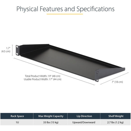 - Product Name: 1U 7in Depth Universal Fixed Rack Mount Shelf - 33lbs / 15kg