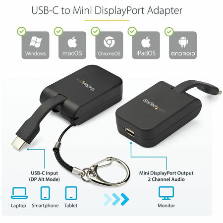 StarTech.com Compact USB C to Mini DisplayPort Adapter - 8K 60Hz DSC/4K USB-C to mDP 1.4 Video Converter w/Keychain Ring - TB3 Compatible - CDP2MDPFC