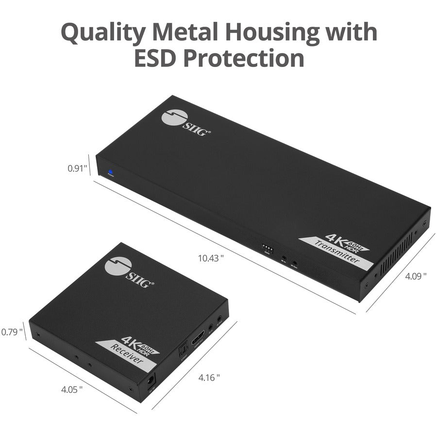 SIIG 1x8 4K 60Hz HDMI Splitter Over Cat6 Extender with Loopout/IR/ARC & RS-232 - Up to 230ft (70m) - Near Zero Latency