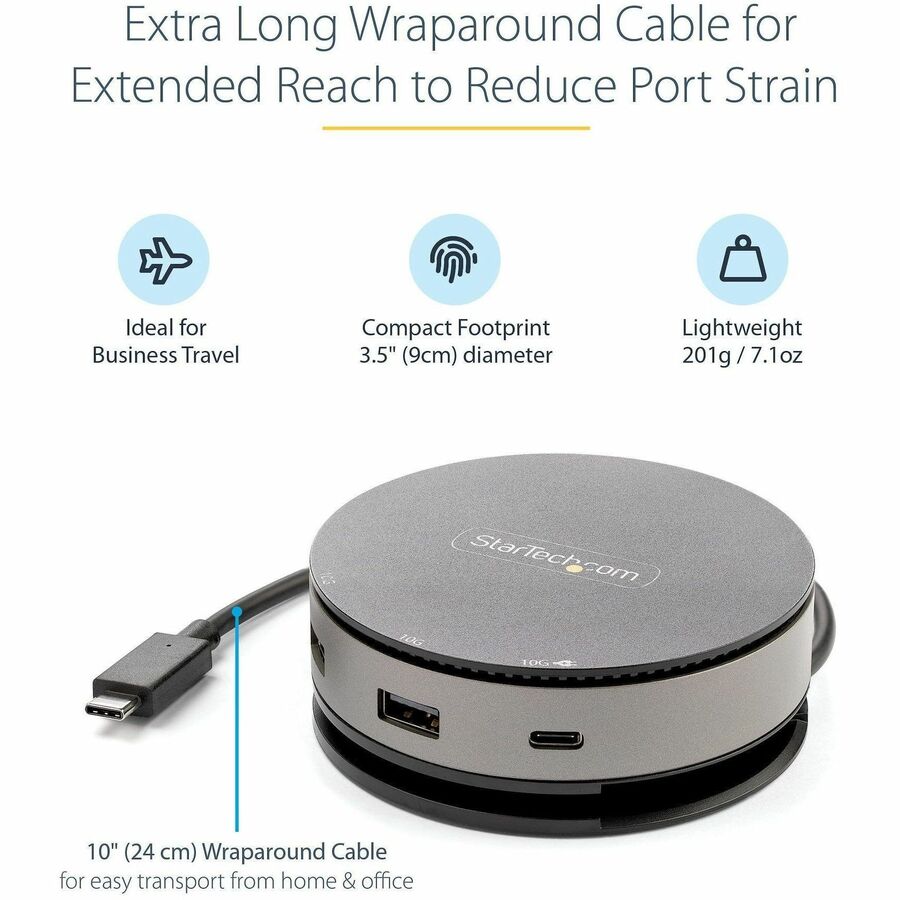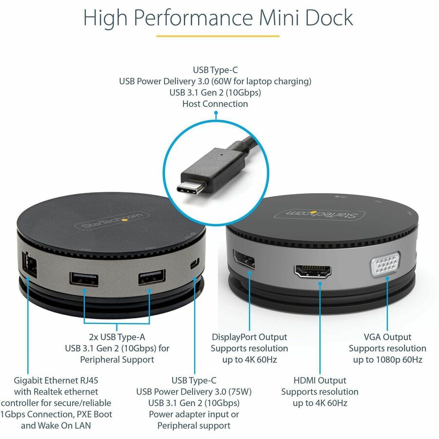 StarTech.com USB C Multiport Adapter - USB Type-C 10Gbps Mini Dock 4K 60Hz HDMI/DisplayPort/1080p VGA - 75W PD Passthrough, USB Hub & GbE
