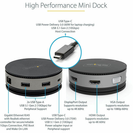 StarTech.com USB C Multiport Adapter - USB Type-C 10Gbps Mini Dock 4K 60Hz HDMI/DisplayPort/1080p VGA - 75W PD Passthrough, USB Hub & GbE - DKT31CHDVCM