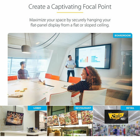 StarTech.com TV Ceiling Mount, Full-Motion Hanging Single Screen Vesa Mount for 32"-75" TVs / Displays - Height Adjustable Telescopic Pole