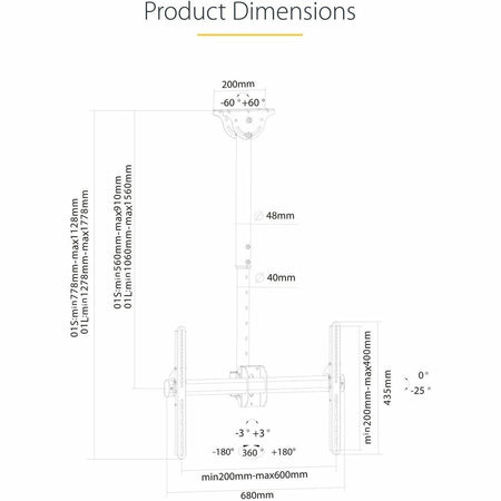 - Product Name: Ceiling TV Mount - 3.5' to 5' Pole