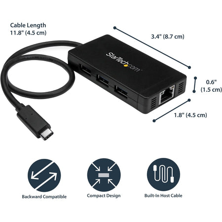 StarTech.com USB-C to Ethernet Adapter? Gigabit? 3 Port USB C to USB Hub and Power Adapter? Thunderbolt 3 Compatible - HB30C3A1GE