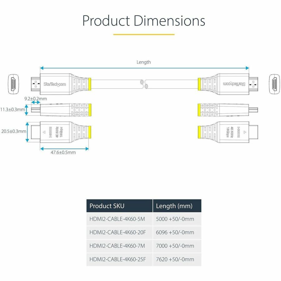 StarTech.com 25ft (7.6m) Premium Certified High Speed HDMI Cable, 4K 60Hz/1440p 144Hz, 18Gbps, UHD HDMI 2.0 Cord, TPE Jacket - HDMI2-CABLE-4K60-25F