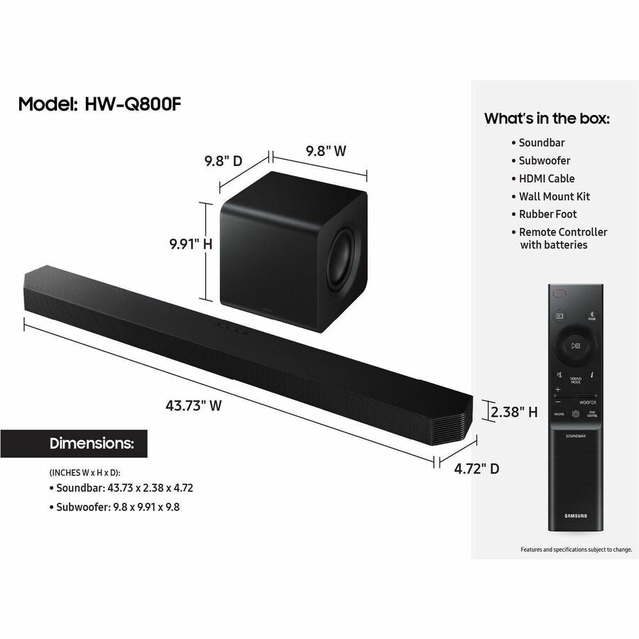 Samsung HW-Q800F 5.1.2 Bluetooth Sound Bar Speaker - Bixby, Alexa Supported - Black - HW-Q800F/ZA