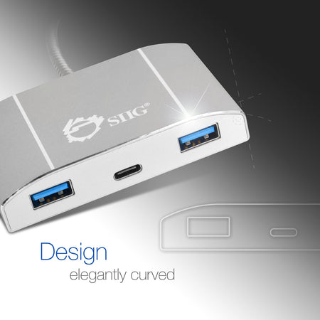 SIIG USB-C to 4-Port USB 3.0 Hub with PD Charging - 3A/1C - JU-H30C11-S1