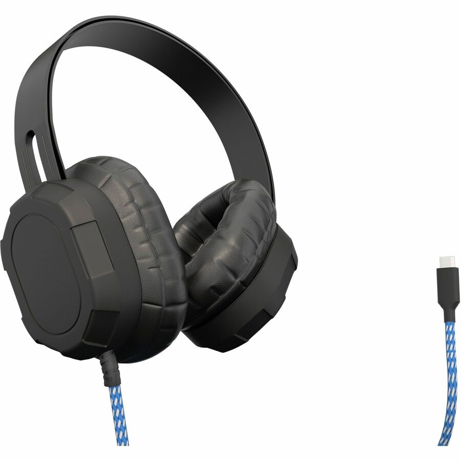 MAXCases Extreme Headset w/braided cable, inline volume control and built-in microphone w/USB-C connector (Black) - MC-HPX-USBC