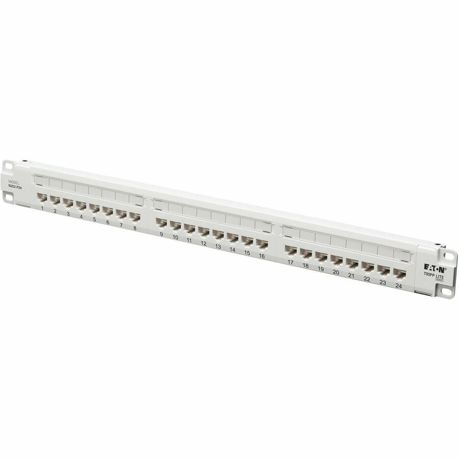 Eaton Tripp Lite Series 24-Port Cat6 Patch Panel - 4PPoE Compliant, 110/Krone, 568A/B, RJ45 Ethernet, 1U Rack-Mount, White, TAA - N252-P24-WH