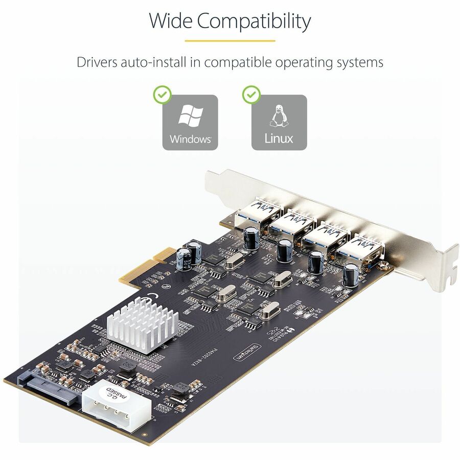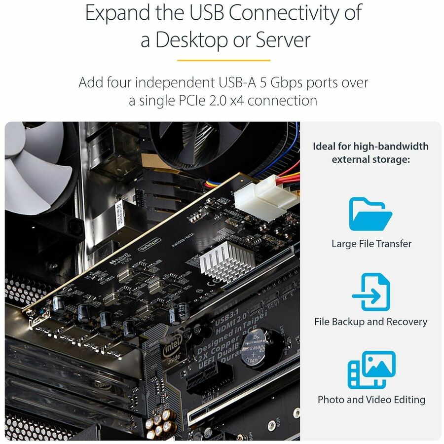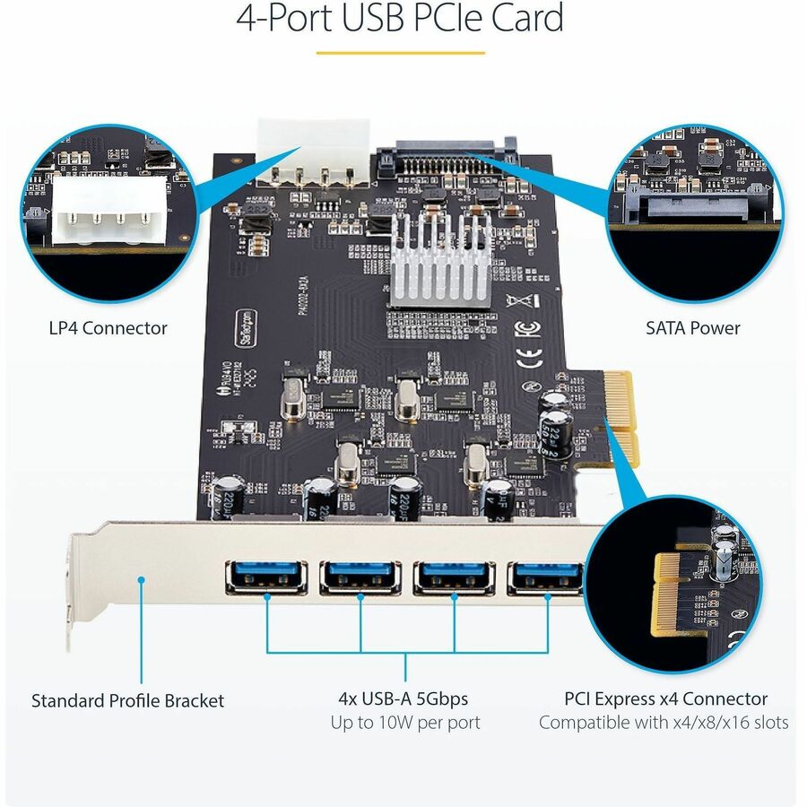 StarTech.com 4-Port USB PCIe Card, USB 3.2 5Gbps, PCI Express Expansion Card with 4x Independent USB Controllers, 4x USB-A Ports - P5Q4A-USB-CARD