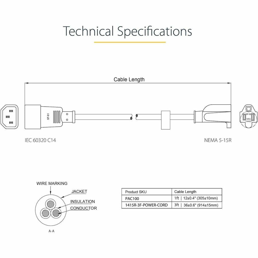 - Product Name: 1 ft Computer Power Cord IEC 320 C14 to NEMA 5-15R