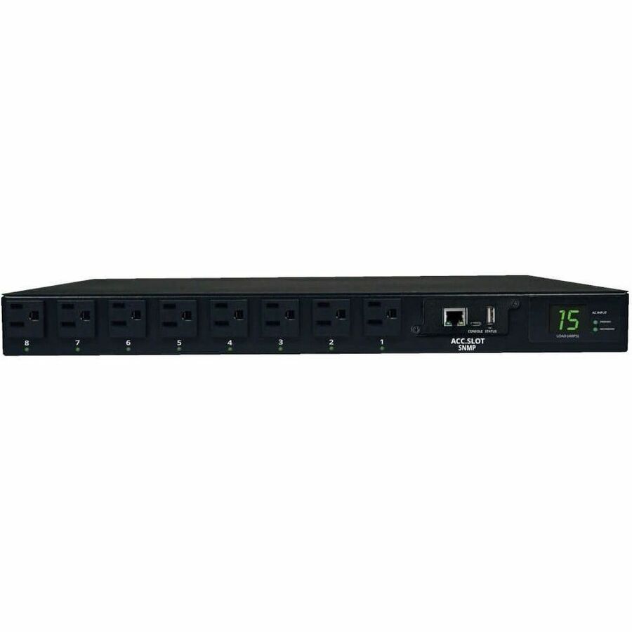 Eaton Tripp Lite Series 1.4kW Single-Phase Switched Automatic Transfer Switch PDU, 2 120V 5-15P 15A Inputs, 8 5-15R Outputs, 1U, TAA