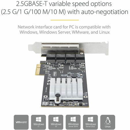 StarTech.com 4-Port 2.5G NBASE-T PCIe Network Card, Computer Network Card Interface, Intel® I225-V, Quad-Port Ethernet, Multi-Gigabit NIC - PR42GI-NETWORK-CARD