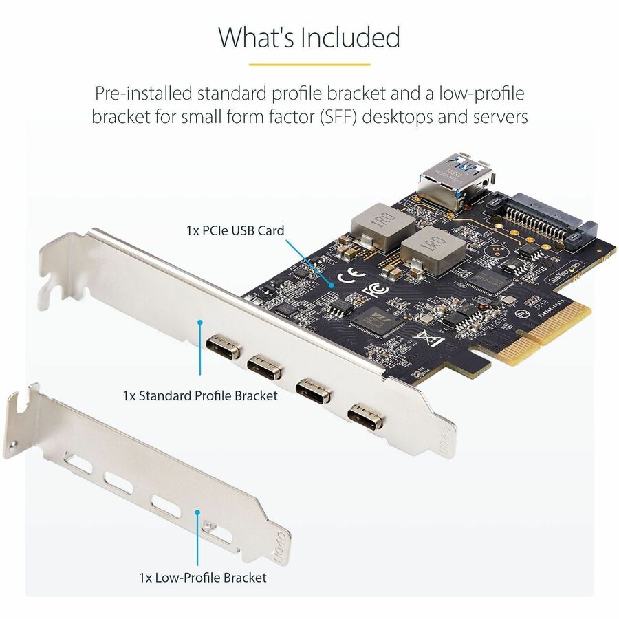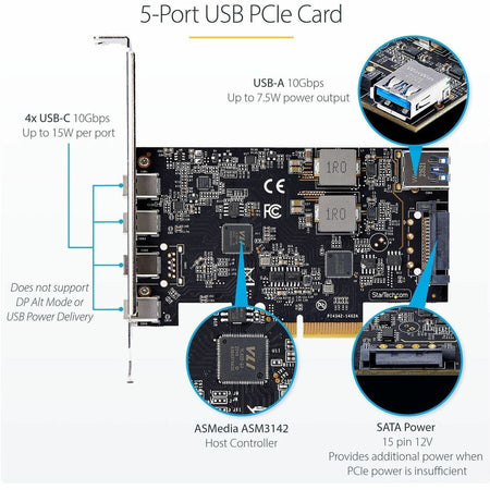 StarTech.com 5-Port USB PCIe Card, USB 3.2 10Gbps, PCI Express Card with 4x USB-C Ports, 1x USB-A Internal Port - PS4C3IA3-USB-C-CARD