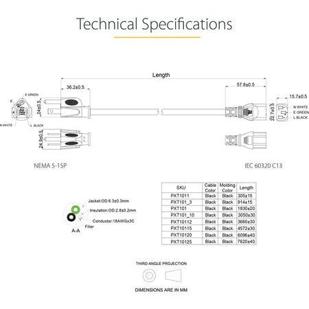StarTech.com 6ft 1(1.8m) Computer Power Cord, NEMA 5-15P to C13, 10A 125V, 18AWG, Black Replacement AC PC Power Cord, TV/Monitor Power Cable - PXT101