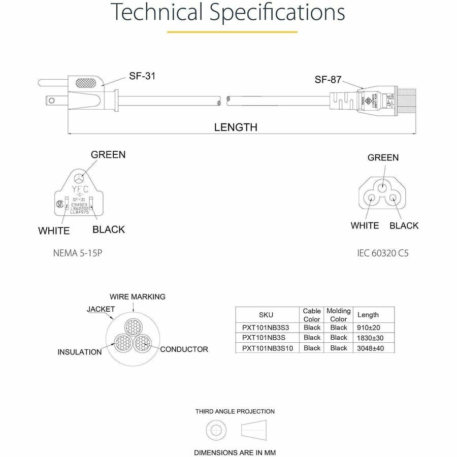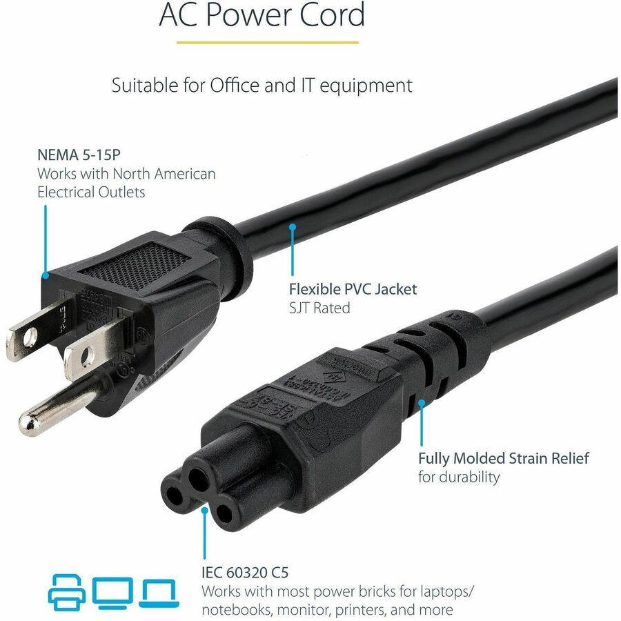 StarTech.com 6ft (1.8m) Laptop Power Cord, NEMA 5-15P to C5 (Clover Leaf), 10A 125V, 18AWG, Laptop Replacement Cord, Power Brick Cable - PXT101NB3S