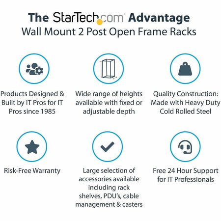 StarTech.com 2-Post 12U Heavy-Duty Wall Mount Network Rack, 19" Open Frame Server Rack with Adjustable Depth, Data Rack for IT Equipment~ - RK12WALLOA