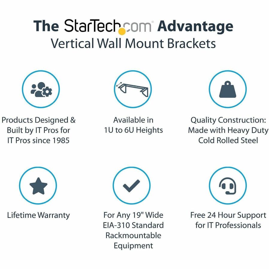 StarTech.com 4U 19in Steel Vertical Wallmount Equipment Rack Bracket - RK419WALLV