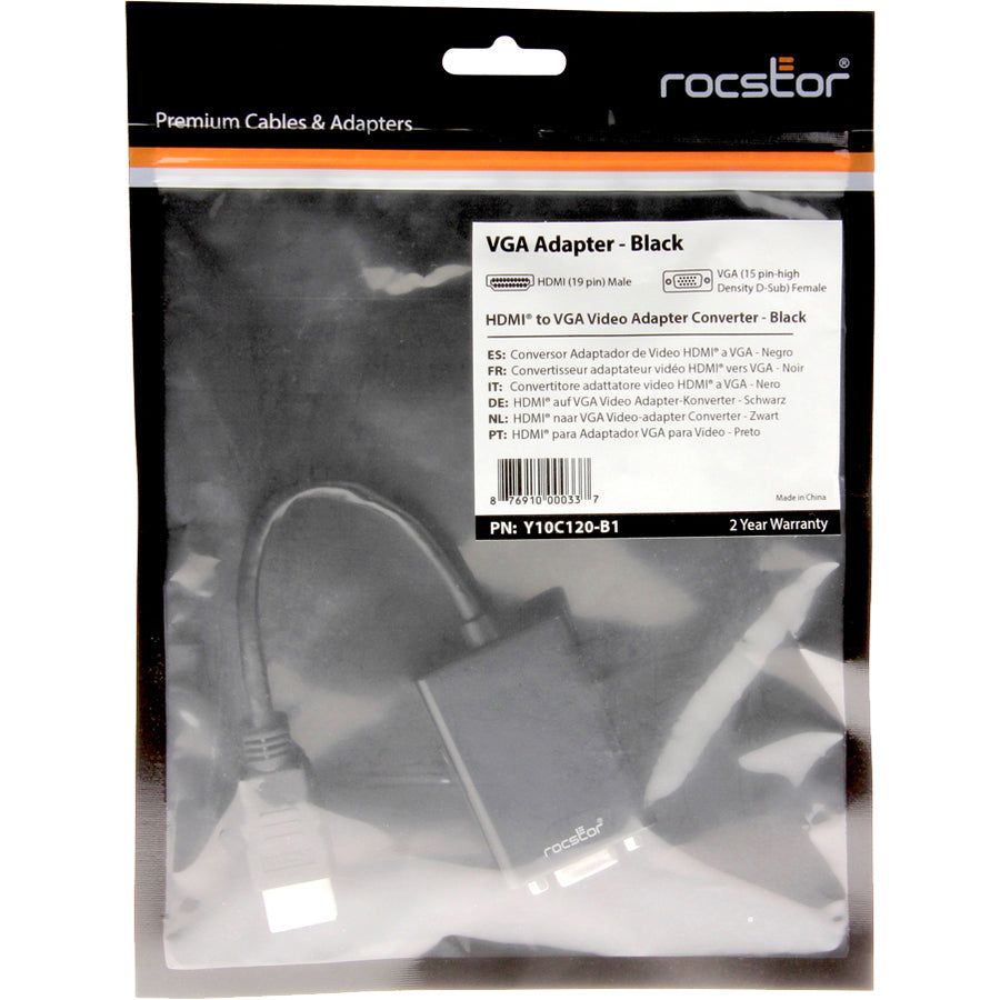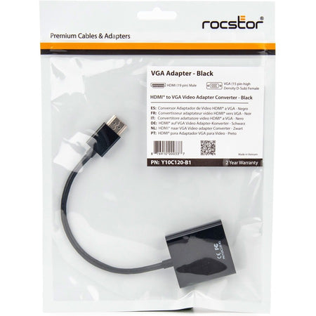Rocstor HDMI to VGA Adapter Converter M/F - 6"- For Ultrabook, Laptop, Monitor, Projectors, Desktop PC, Laptop - 1920x1080 - 1 Pack - 1 x HDMI Male Digital Audio/Video - 1 x HD-15 Female VGA - 6 Inch - Black - ADAPTER HDMI TO VGA HD15
