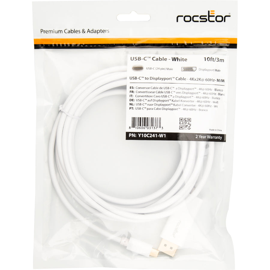 Rocstor Premium 10ft / 3m USB Type C to DisplayPort Cable - USB C to DP Cable - 4K 60Hz - White - DisplayPort/USB for Video Device, Monitor, Workstation, Projector, MacBook, Chromebook, Notebook, TV - Y10C241-W1