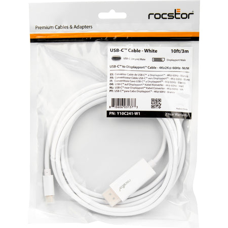 Rocstor Premium 6ft / 2m USB Type C to DisplayPort Cable - USB C to DP Cable - 4K 60Hz - White - DisplayPort/USB for Video Device, Monitor, Workstation, Projector, MacBook, Chromebook, Notebook, TV - - Y10C240-W1
