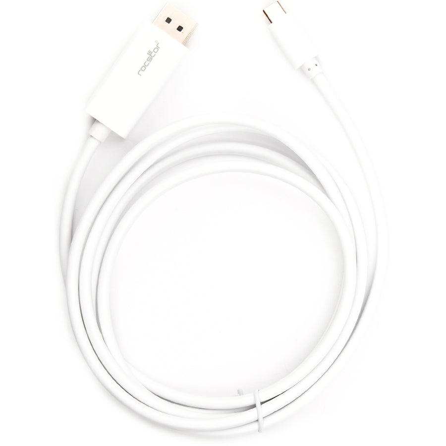 Rocstor Premium 6ft / 2m USB Type C to DisplayPort Cable - USB C to DP Cable - 4K 60Hz - White - DisplayPort/USB for Video Device, Monitor, Workstation, Projector, MacBook, Chromebook, Notebook, Ultrabook, TV - 6ft - 1 Pack - 1 x Type C Male USB - 1 x DisplayPort Female Digital Video - White USB C TO DP Adapter Cable