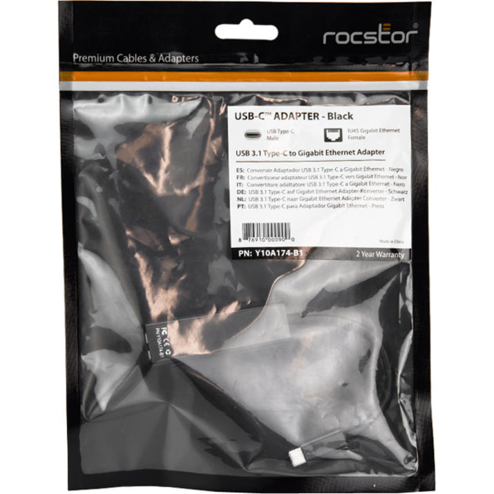 Rocstor Premium USB-C to Gigabit Network Adapter - USB Type-C to Gigabit Ethernet 10/100/1000 Adapter - Supports PXE Boot, Wake-On-Lan - Compatible with Mac & PC - Plug & Play (No Drivers Needed) - Black - USB 3.1 - 1 Port(s) - 1 - Twisted Pair WITH NATIVE DRIVER SUPPORT