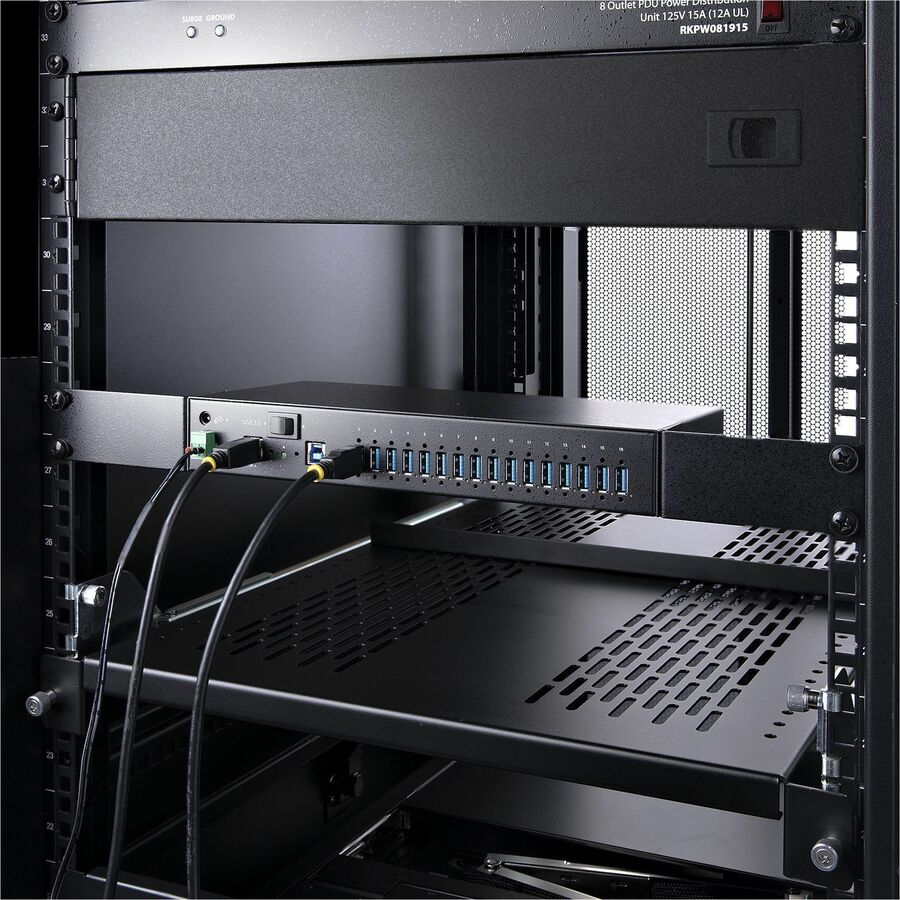 StarTech.com 16-Port Industrial USB 5Gbps Hub with Power Adapter, Mountable, Terminal Block Power, USB Charging, Dual-Host Hub/Switch