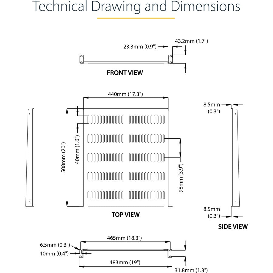 StarTech.com 1U Vented Server Rack Cabinet Shelf - Fixed 20" Deep Cantilever Rackmount Tray for 19" Data/AV/Network Enclosure w/Cage Nuts - SHELF-1U-20-FIXED-V
