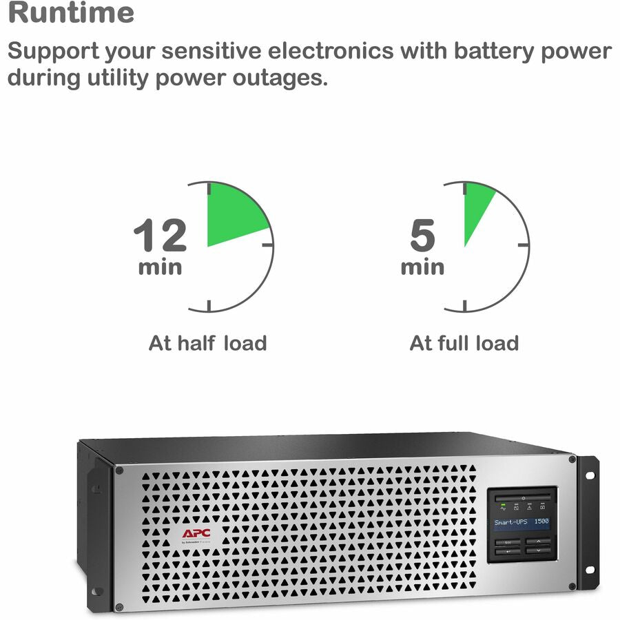 APC Smart-UPS, Line Interactive, 1500VA, Lithium-ion, Rackmount 3U, 120V, 6x NEMA 5-15R outlets, SmartConnect Port+Network Card, Short Depth, AVR, LCD
