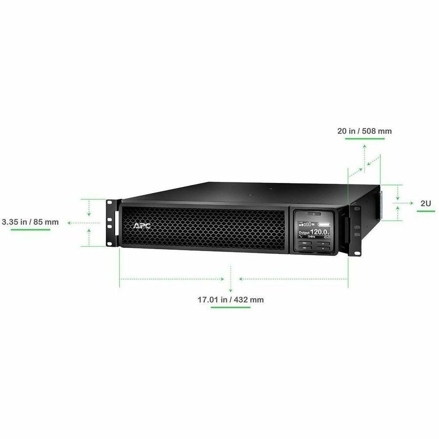 APC Smart-UPS On-Line, 1500VA, Rackmount 2U, 120V, 6x NEMA 5-15R outlets, SmartSlot, Extended runtime, W/ rail kit - SRT1500RMXLA