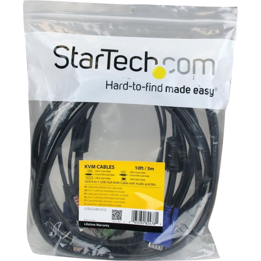 StarTech.com 4-in-1 USB VGA KVM Cable - Audio and Microphone - Keyboard / video / mouse / audio cable - 4 pin USB Type A, HD-15, mini-phone stereo 3.5 mm (M) - HD-15, mini-phone stereo 3.5 mm , 4 pin - USBVGA4N1A10