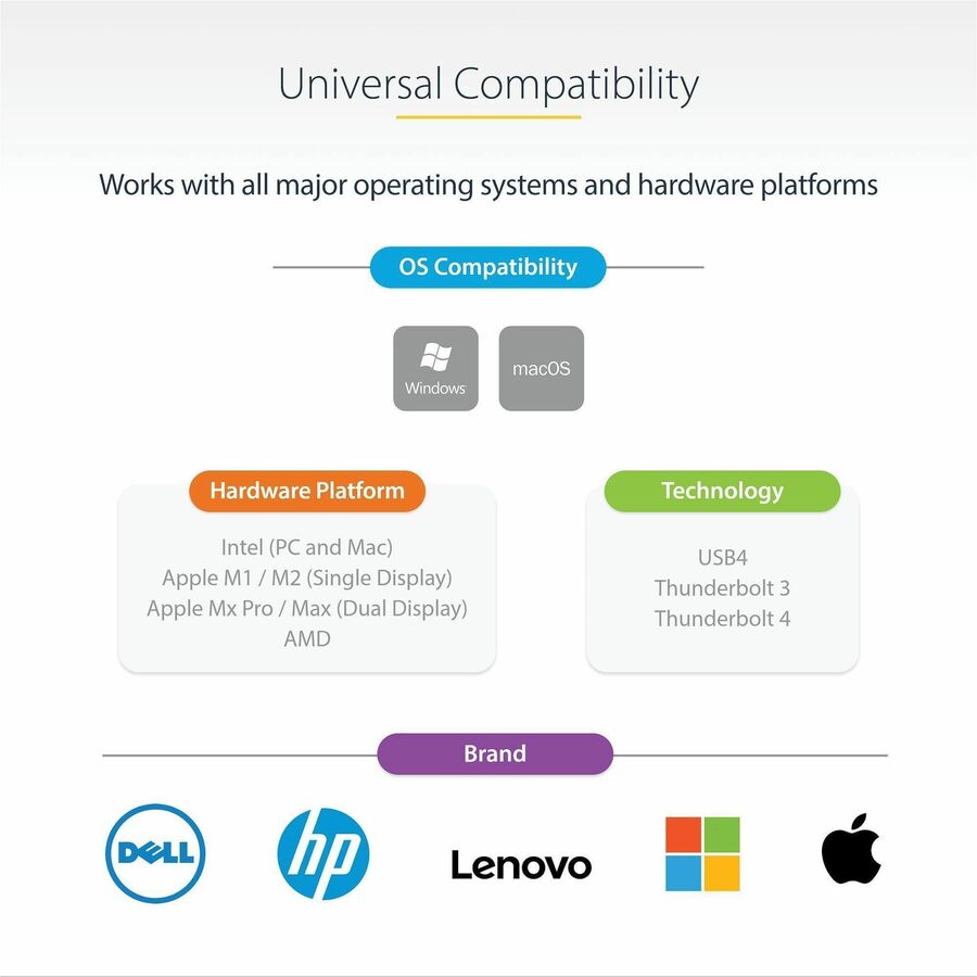 StarTech.com Thunderbolt Dock w/USB-C Host Compatibility - Dual 4K 60Hz DP 1.4 or HDMI TB/USB-C Docking Station - 1x 8K - 96W PD/5xUSB
