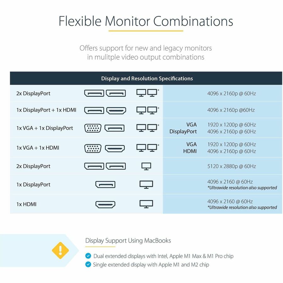 StarTech.com Thunderbolt 3 Dock, Dual 4K 60Hz Monitor TB3 Docking Station with DisplayPort, HDMI & 1080p VGA, 85W Power Delivery, TAA - TB3DK2DHV