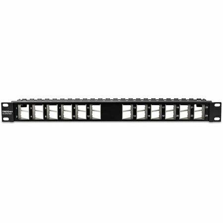 TRENDnet 24-Port Blank Angled Keystone Shielded 1U Patch Panel, TC-KP24SA, STP, Cat6A, Cat5, Cat5e, Cat6, 19" Rackmount Design, Black - TC-KP24SA