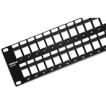 TRENDnet 48-Port Blank Keystone 2U HD Patch Panel, 2U 19" Rackmount Housing, HD Keystone Network Patch Panel, Recommended With TC-K25C6 & TC-K50C6 Cat6 Keystone Jacks (Sold Separately), Black, - TC-KP48